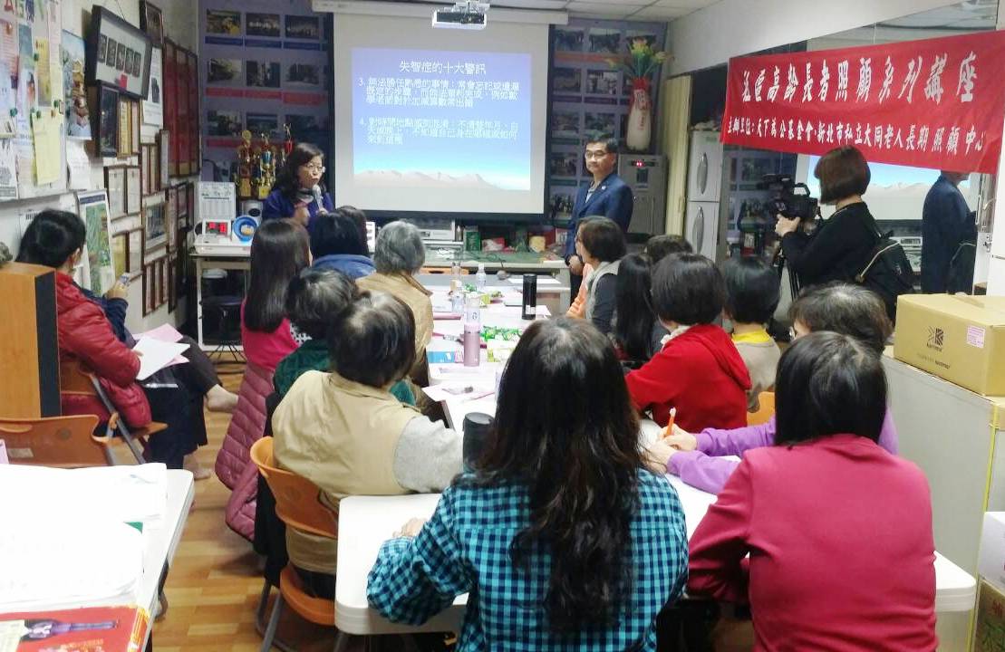 天下為公基金會1月11日下午在南港區玉成里辦公處,舉辦「高齡長者健康促進」講座,主題是「失智症照顧及預防跌倒」,邀請玉成里長黃聰智主持,基金會社工副組長簡文政、新北市汐止區大同長期照顧中心督導劉士聖及台北市聯合醫院忠孝院區護理師等人,到場共襄盛舉。