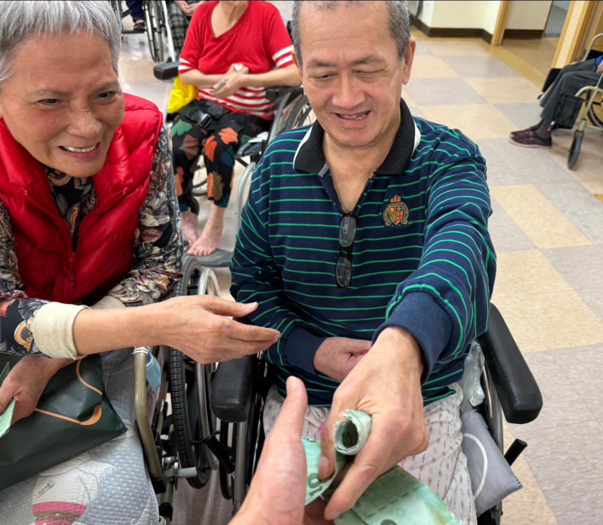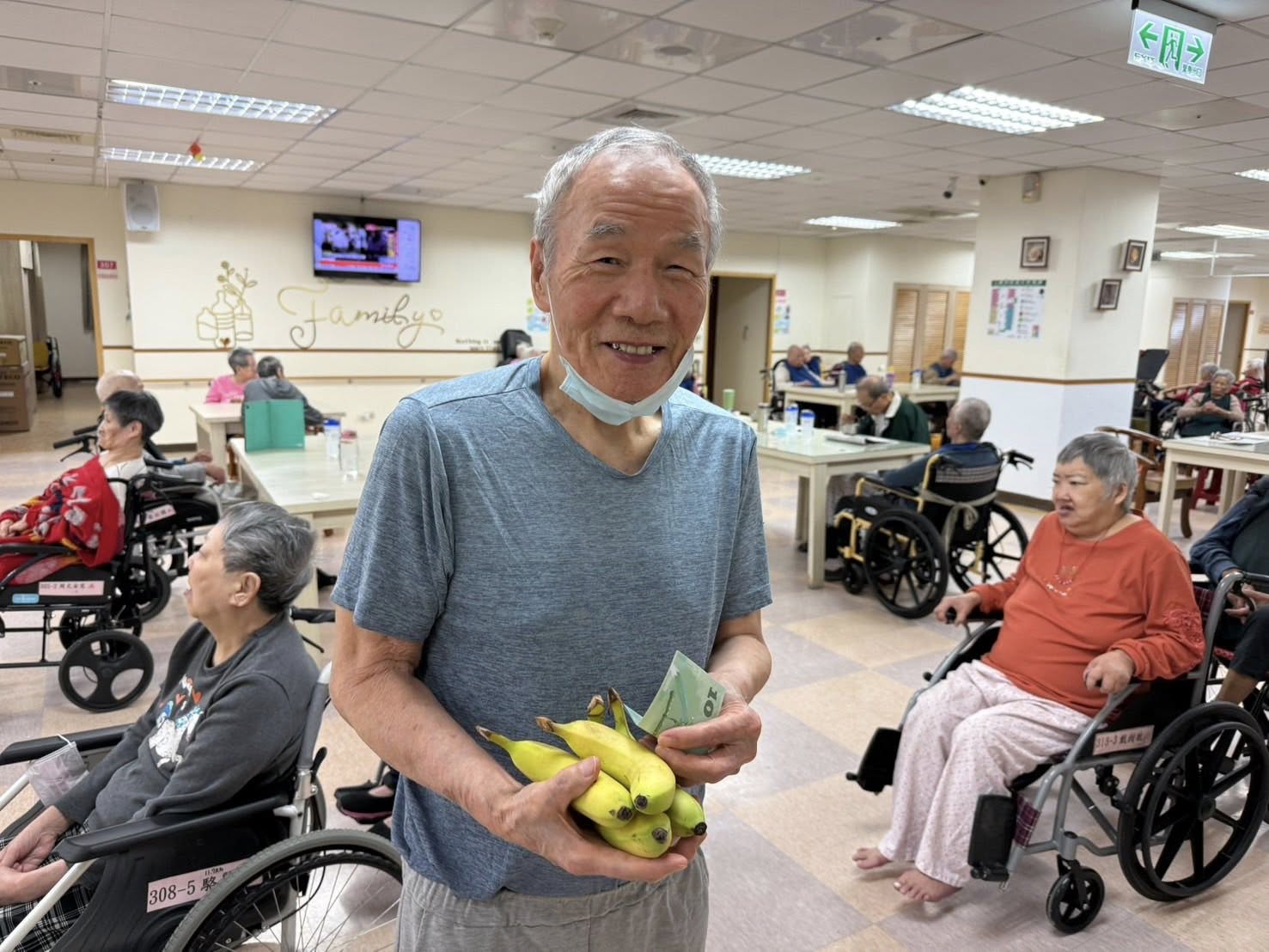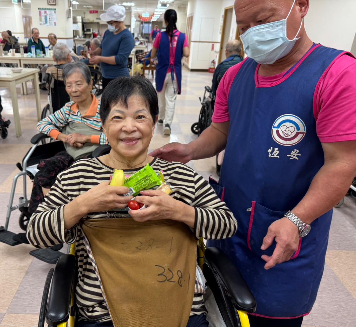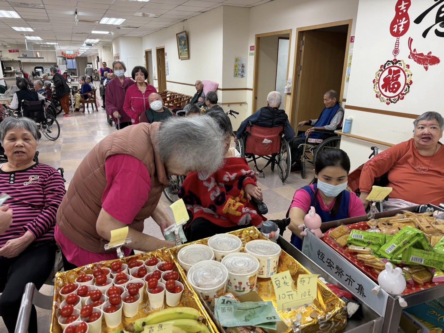 大家推著輪椅、拿著小皮包、開心排隊,認真挑選喜歡的水果、餅乾、飲品……場面就像回到傳統市場一樣熱鬧溫馨。