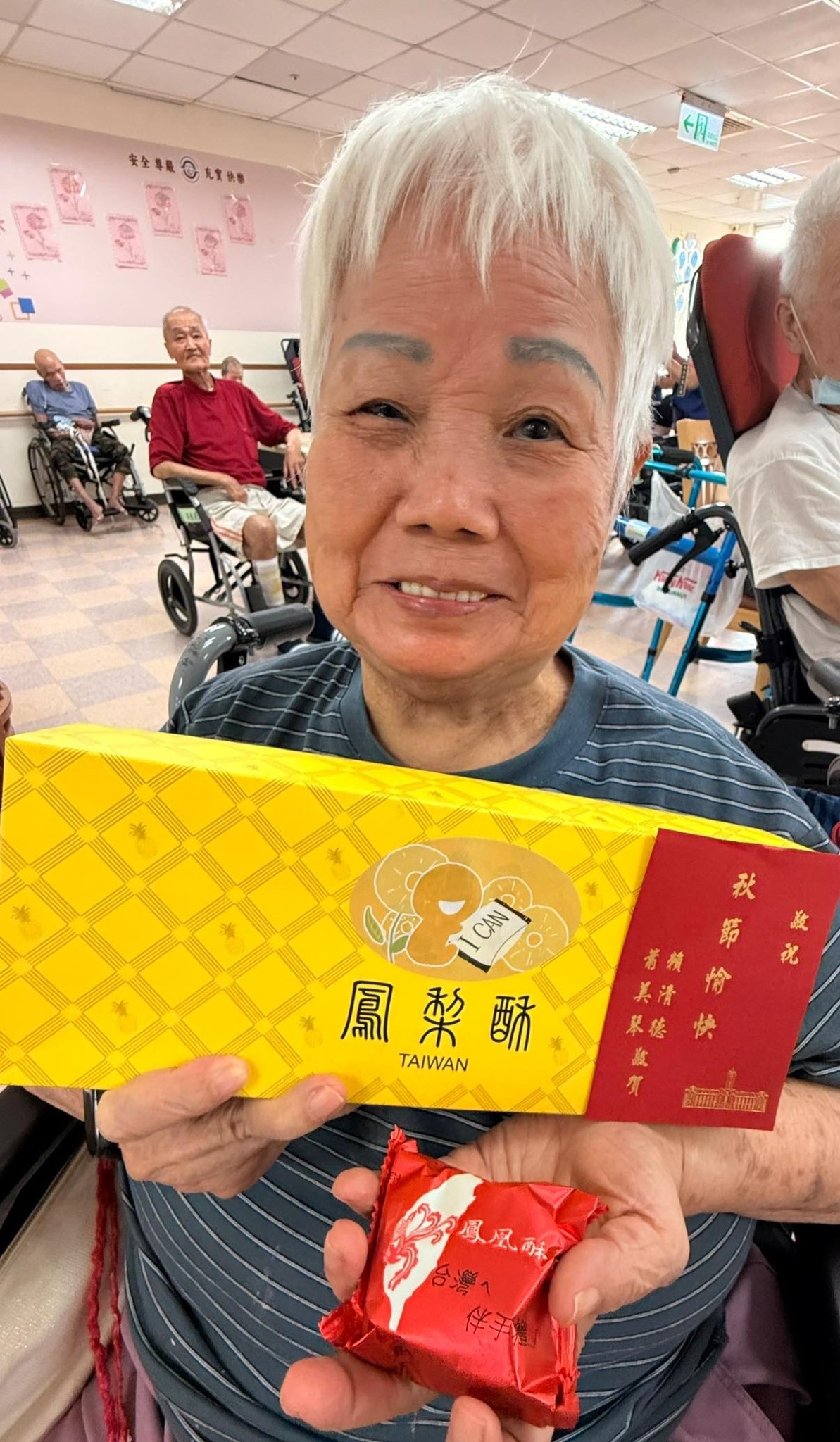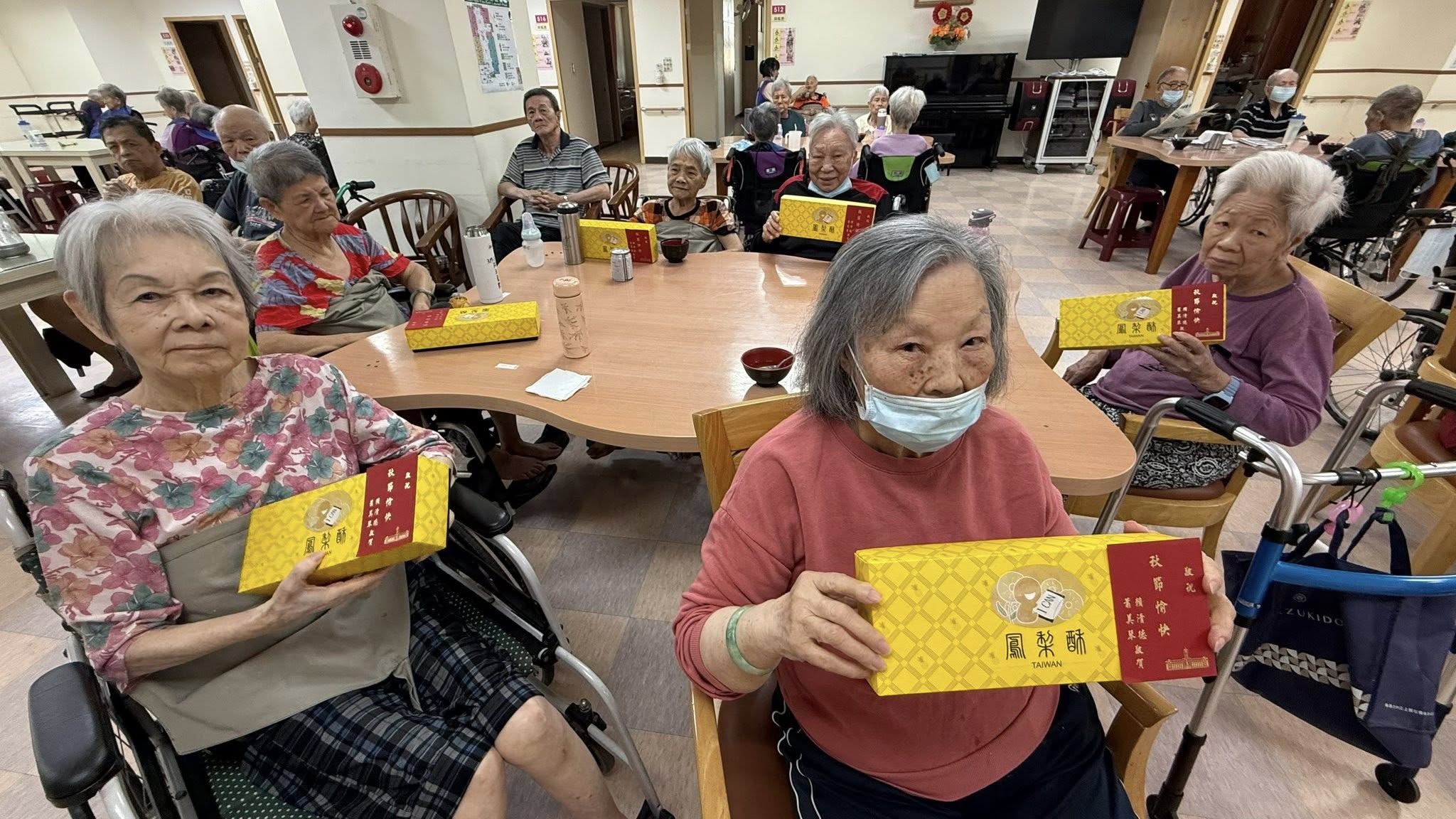 非常感謝「總統府」送來的香甜鳳梨酥,讓每一位爺爺奶奶們笑得合不攏嘴,紛紛比起大拇指,說著「甜在嘴裡、暖在心裡」。