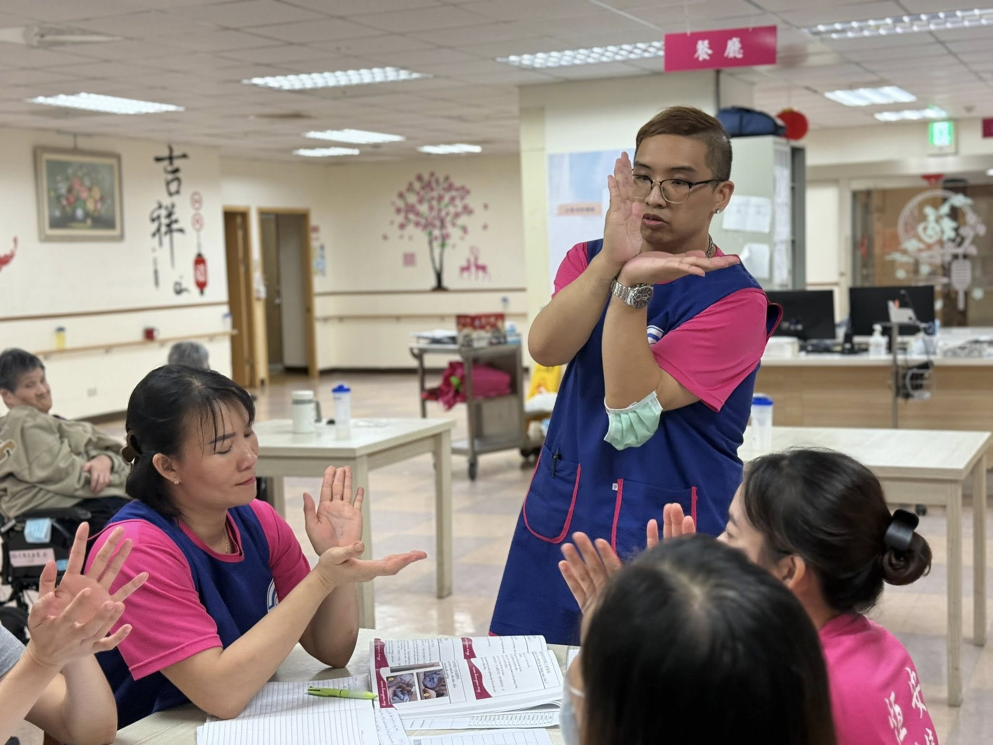 鎧戎組長以豐富的臨床經驗,細心講解拍背的正確手勢、角度與節奏,並強調在照護長輩呼吸道清理時,安全與舒適並重的重要性。